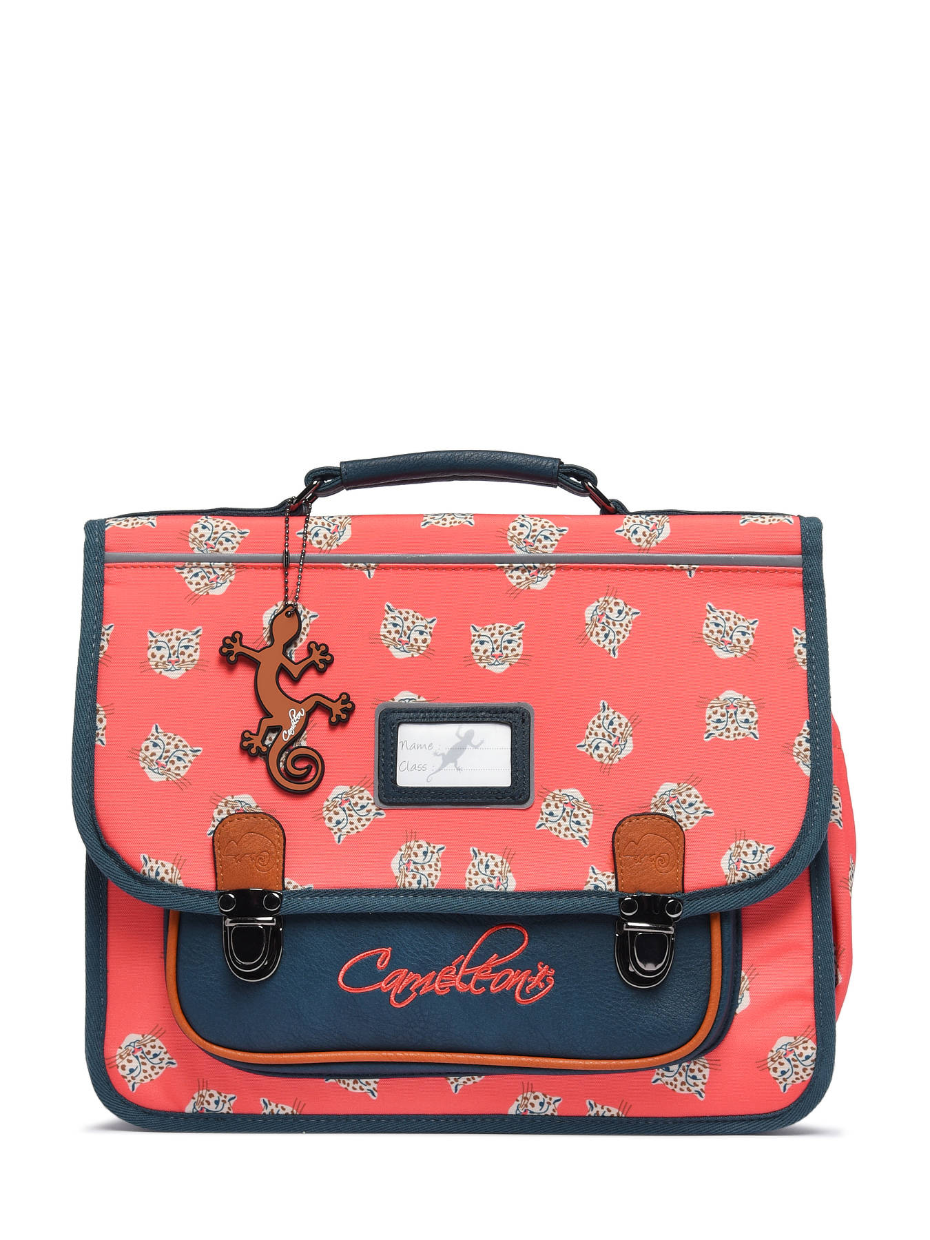 35 cm - 13 liter - 0.89 kg ~ Deze toffe boekentas uit de Retro collectie van Caméléon is ideaal voor de kleuterklas, of die eerste stapjes in het basisonderwijs. Uw kind zal verzot zijn op de kleurrijke print en retro uitstraling! De boekentas kan veilig worden geopend en gesloten dankzij het dubbele kliksysteem, en binnenin zijn twee gescheiden opbergvakken voorzien. Ideaal om een schoolagenda, schriften en een pennenzak in te stoppen! Er is ook een handig steekvakje aan de voorkant voorzien, om een snack of zakdoek in te stoppen. Onder de overslagflap bevindt zich een uniek opbergvakje voor een liniaal. En dankzij enkele reflectoren kan uw kind zich veilig in het verkeer begeven. Tenslotte zijn de verstelbare schouderbandjes en rugzijde gewatteerd, voor een optimaal draagcomfort.
