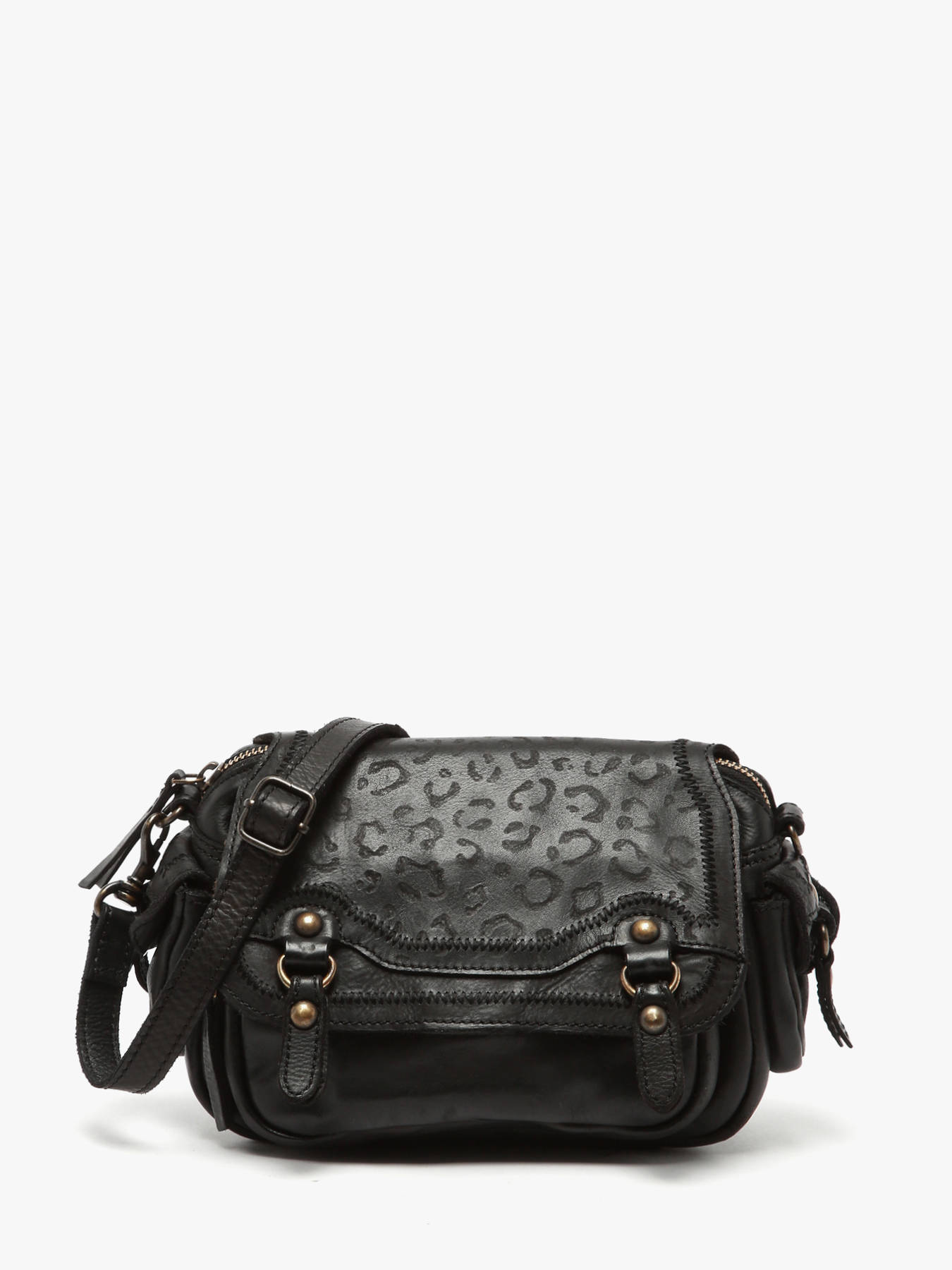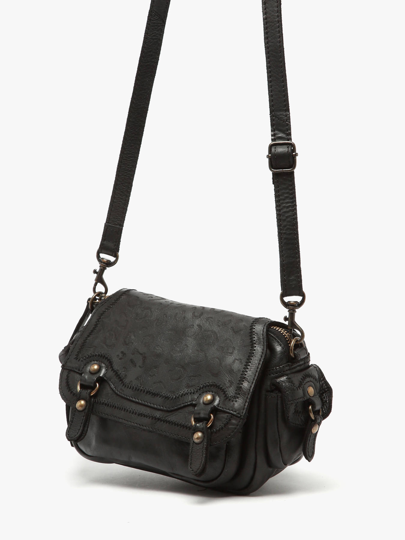 • Cross Body Tas Vintage Leder Mila louise Zwart vintage 23059V