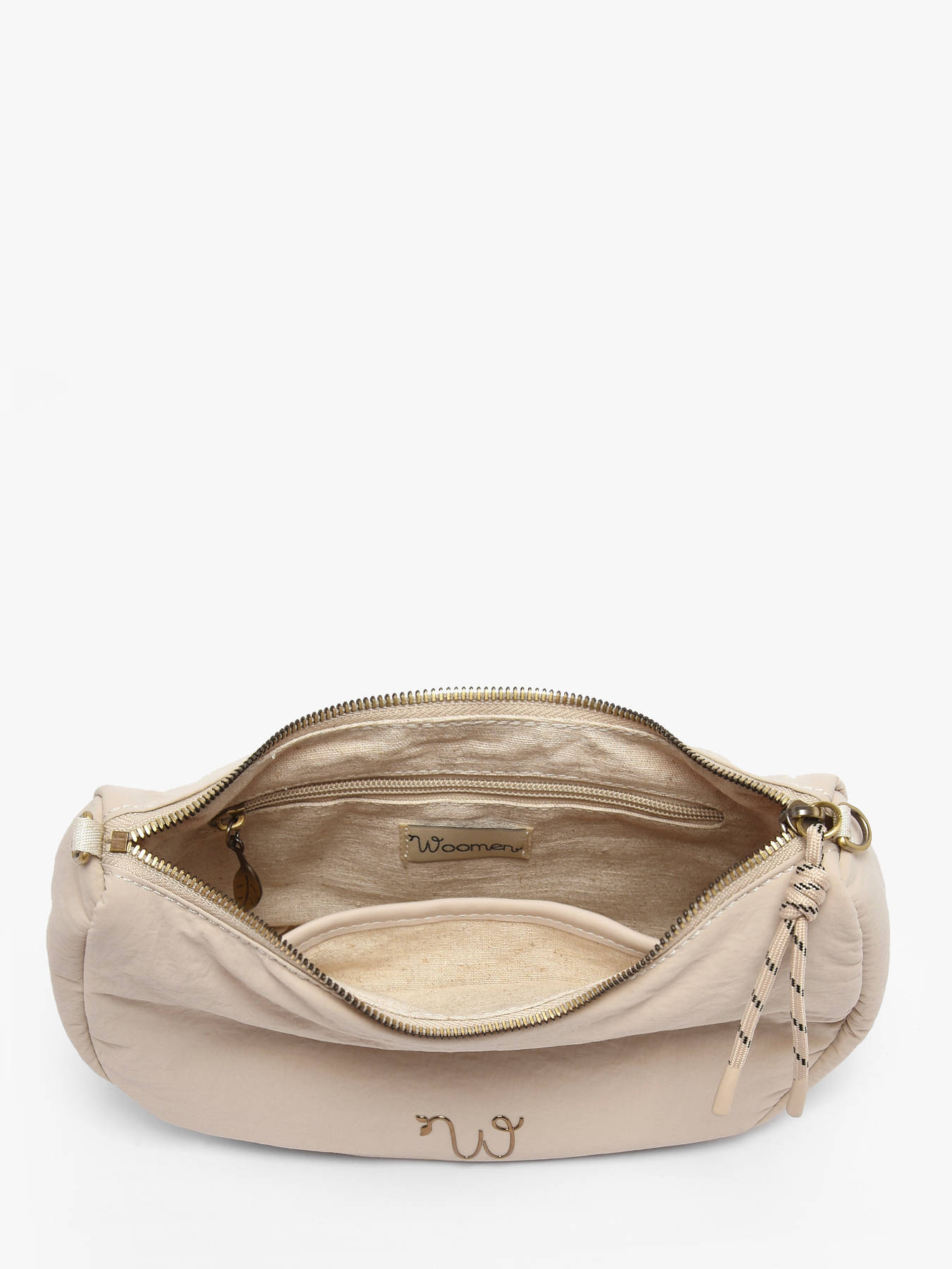 De cross body tas WOOMEN formaat S uit de lijn Primevère combineert stijl, praktisch gebruik en duurzame betrokkenheid. Het hoofdmateriaal van gerecycled nylon, gevoerd met katoen en linnen, biedt lichtheid en stevigheid. De decoratieve koorden en het onderscheidende logo geven het model originaliteit en raffinement. Deze tas beschikt over een ritssluiting, een schouderriem van webbing met het WOOMEN-logo, een ritsvak aan de achterkant, en binnenin een ritsvak en een steekvak om je essentials eenvoudig te organiseren. Het gouden resinelogo maakt het ontwerp compleet, waardoor deze tas een praktisch, elegant accessoire is, perfect om al je outfits compleet te maken.
