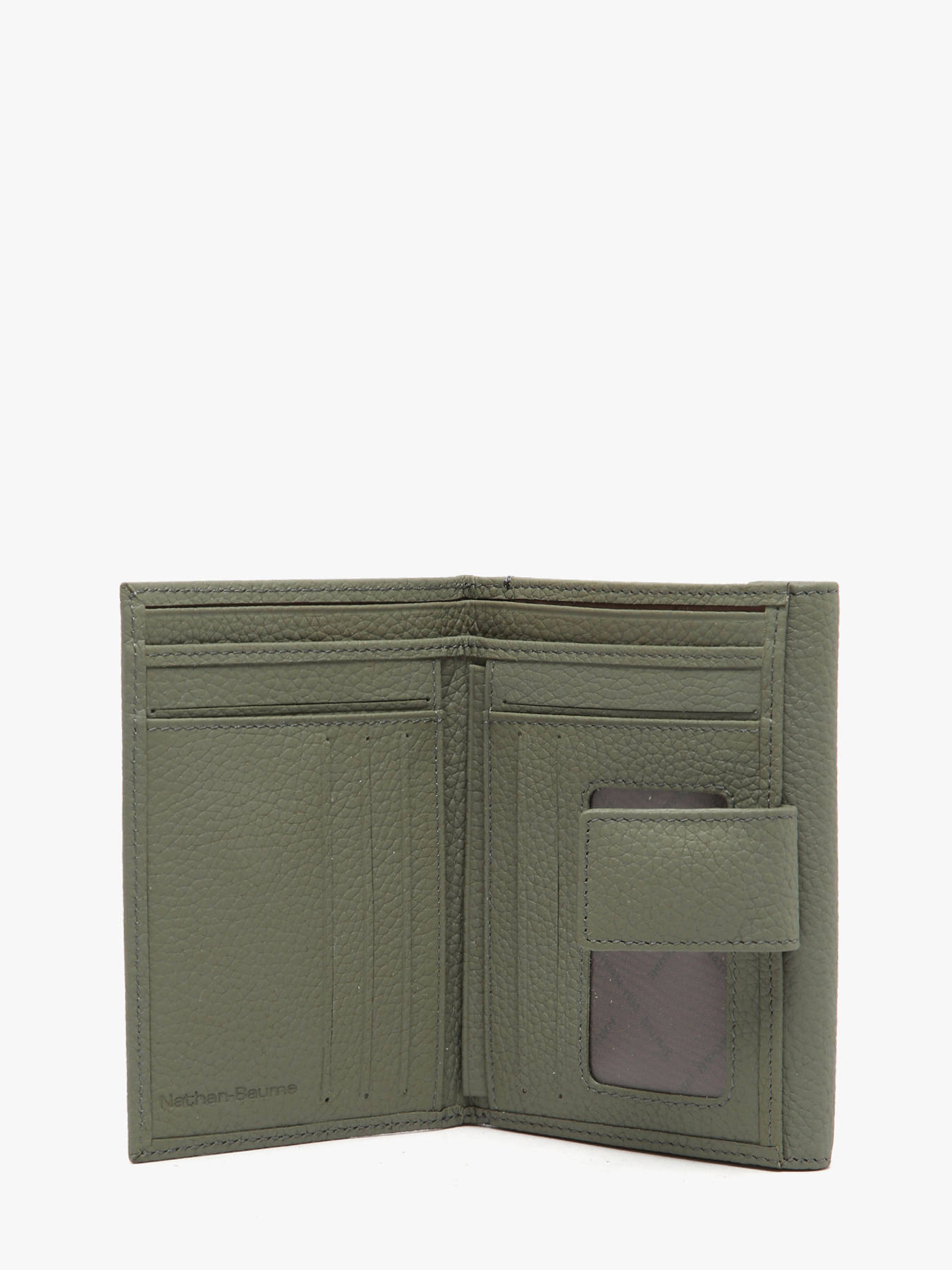 Een klassiek compact model van het merk Nathan baume, dat u dagelijks vergezelt. Deze portefeuille biedt plaats voor 8 bankkaarten en 2 compartimenten voor biljetten. Verder is er ook een ruim compartiment met flap en drukknop voorzien voor kleingeld en een plastiekhoesje voor het opbergen van een rijbewijs.