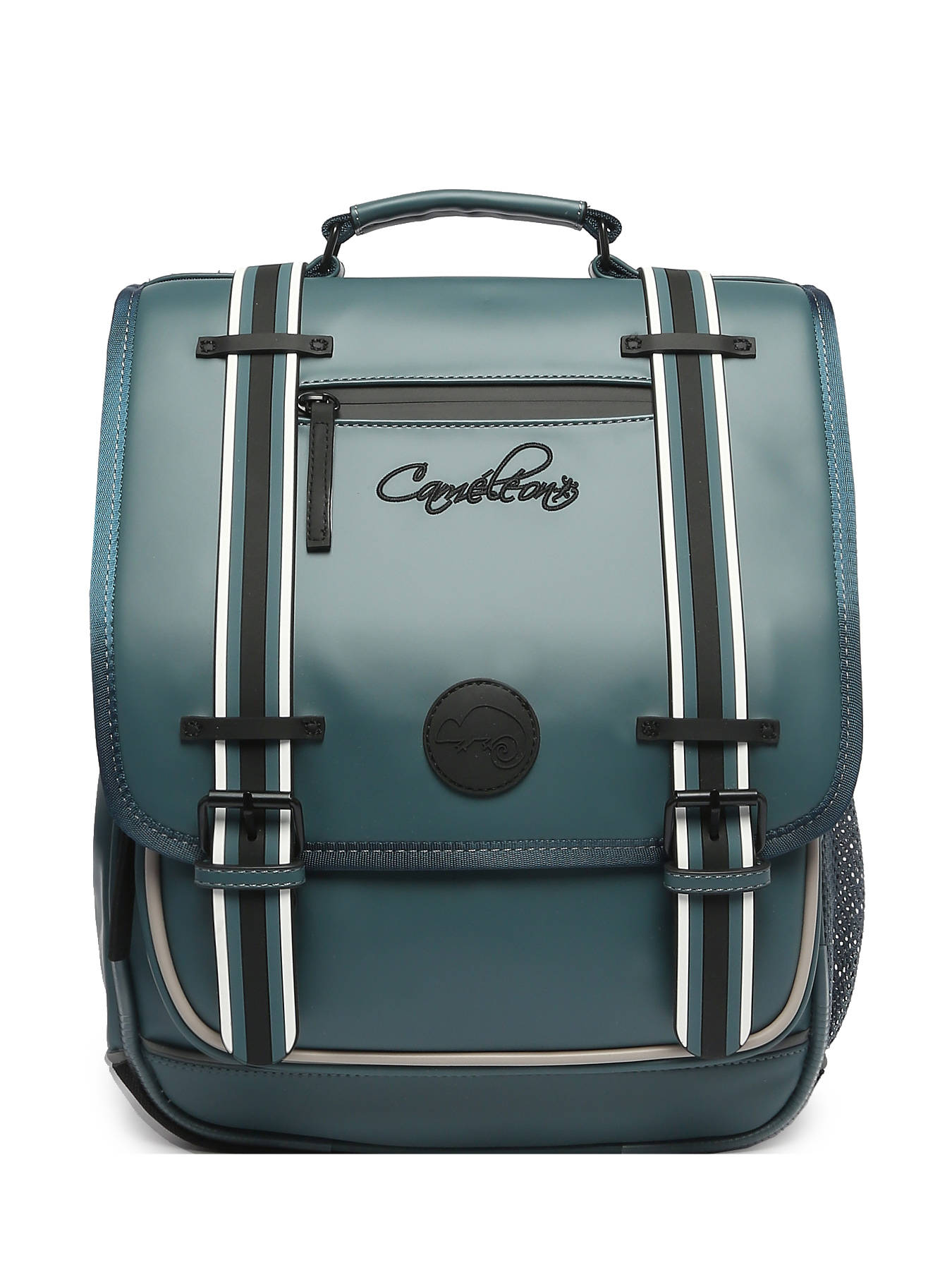 Deze rugzak uit de Vintage North collectie van Caméléon is ideaal voor de 1ste graad van de basisschool. Deze rugzak is gemaakt van waterafstotend gerecycleerd polyester, en beschikt over drie ruime opbergvakken. Deze kunnen schriften (24x32 cm) en schoolboeken van A4 formaat of groter bevatten. Daarnaast beschikt deze Caméléon-rugzak ook over een ruim voorvak met ritssluiting, en een handig mesh zijvakje om een waterfles in op te bergen. Onder de overslagflap bevindt zich een uniek opbergvakje voor een liniaal. Dankzij reflecterende strips kan uw kind zich veilig in het verkeer begeven. Tenslotte zijn de verstelbare schouderbanden en rugzijde gewatteerd, voor een optimaal draagcomfort.