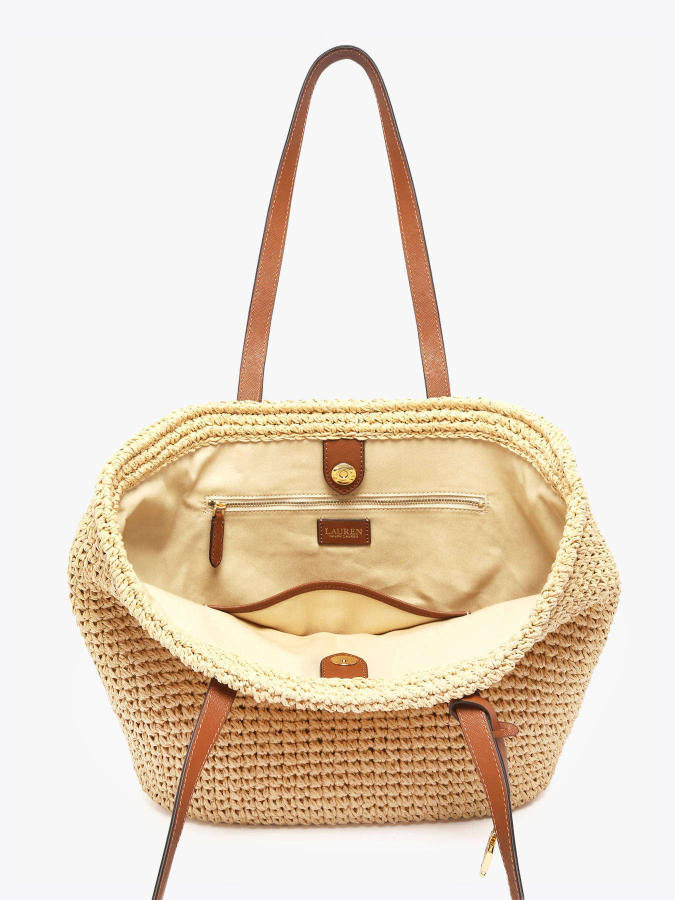 Schoudertas Lainey raffia en leder LAUREN RALPH LAUREN