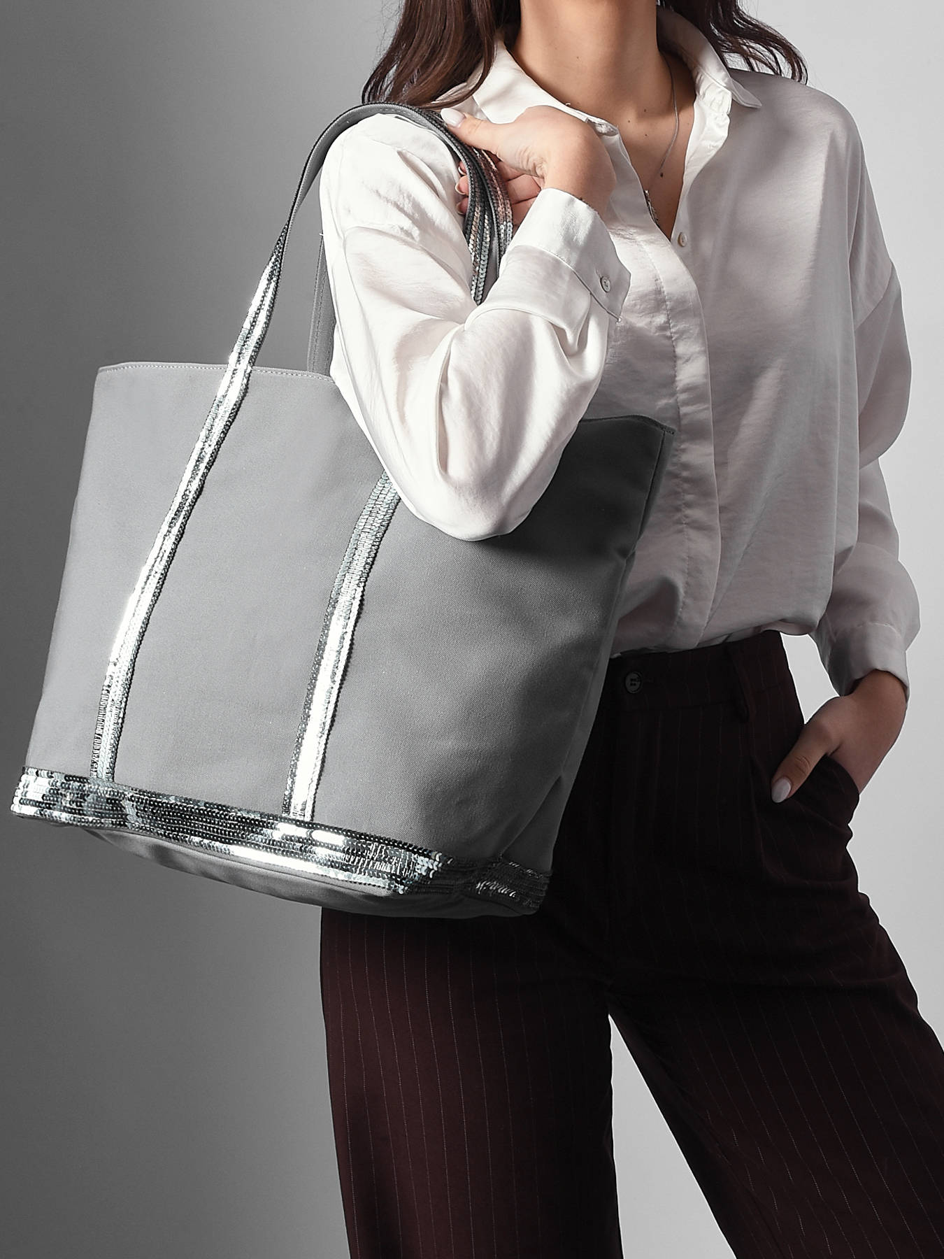 Deze ruime schoudertas met ritssluiting komt uit de Le Cabas collectie van Vanessa Bruno. Deze shopper is gemaakt van stevig katoen, en werd afgewerkt met glinsterende pailletten. Dankzij de twee lange hengsels kan je deze shopper in de hand of losjes over de schouder dragen.