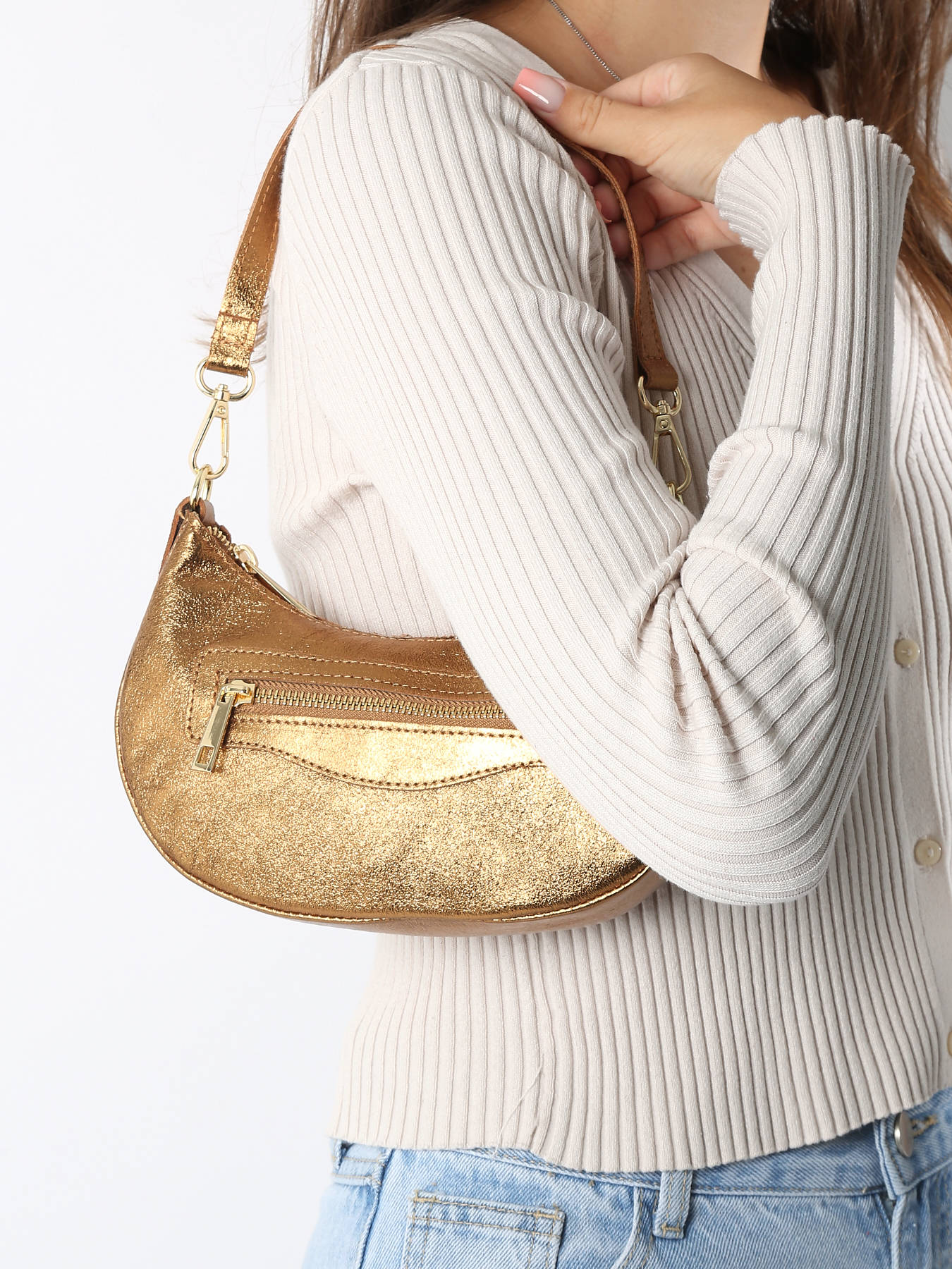Schoudertas velvet caviar leder